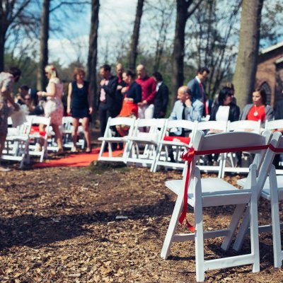 De meest populaire & romantische Wedding Chair van dit moment. Inklapbaar, stapelbaar en zeer comfortabel door de zacht lederen zitting. Ideaal voor je ceremonie en schitterend aan te kleden met bloemen of andere decoraties. Onze trouw klapstoelen lijken veel op de (houten) Amerikaanse Wedding Chairs en staan schitterend in combinatie met een witte loper welke ook bij ons is te huren!